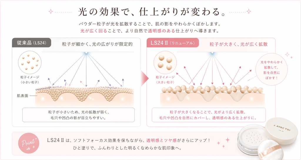 パウダー粒子が光を拡散することで、
